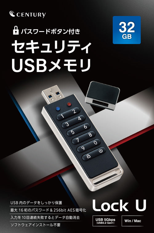 Lock U 32GB パスワードボタン付きセキュリティUSBメモリ |