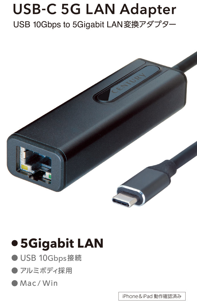 - 最大 5Gigabit LANに対応。(USB 10Gbps Type-C ポート接続時)