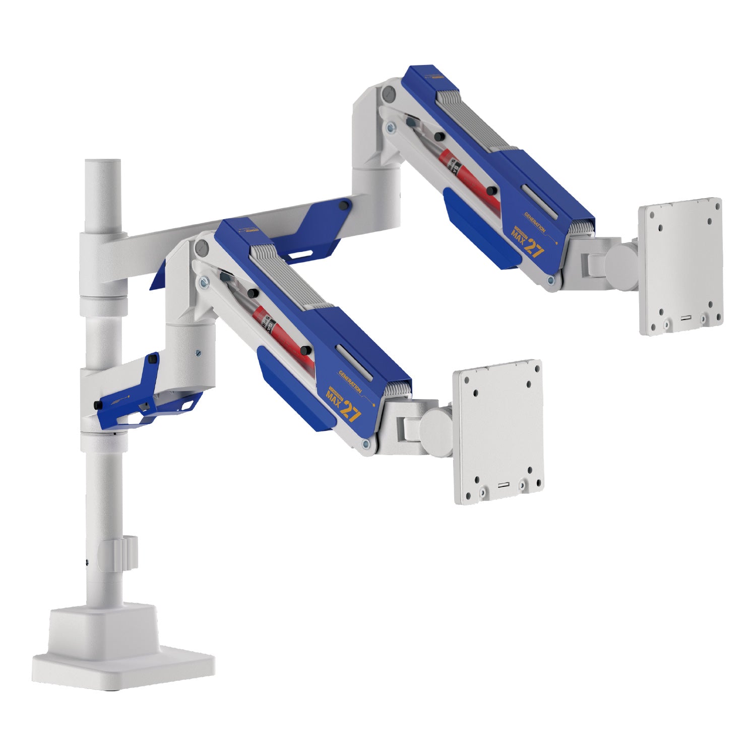 - 支柱タイプのデュアルアーム。1画面のみご使用の際はシングルアームとしてもお使いいただけます。